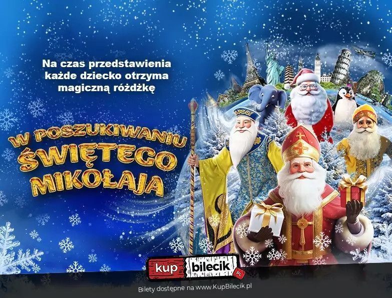Zanurz się w jeszcze bardziej magiczny świat pełen zimowych cudów, niezapomnianych przygód i fantastycznych spotkań z bajkowymi bohaterami! Spektakl "W poszukiwaniu Świętego Mikołaja" to rozbudowana, pełna emocji opowieść, która oczaruje całą rodzinę - zarówno dzieci, jak i dorosłych.