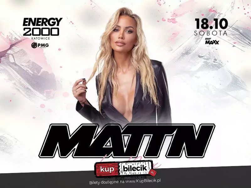 bilety: Przygotujcie się na wyjątkową noc w najlepszym wydaniu EDM! W sobotę 18 października Energy 2000 Katowice rozbłyśnie światowymi dźwiękami dzięki jednej z najbardziej rozpoznawalnych DJek na scenie elektronicznej - MATTN! To belgijska gwiazda, która szturmem podbiła największe festiwale świata. Jej sety to potężna dawka energii, łącząca bigroom, future house i clubowe bangery, które rozpalają parkiety do czerwoności. Jako część labelu Smash The House i jedna z najbardziej rozchwytywanych DJek w Europie, MATTN gwarantuje show pełne nie tylko muzycznych emocji, ale też widowiskowej oprawy i niepowtarzalnego klimatu. To będzie jedna z najbardziej elektryzujących nocy tego roku - pełna energii, światła i muzyki z najwyższej półki. Wiek 18+ | Start 21:30 | Występ ok 1:15 Bilety do nabycia na: KupBilecik.plMattn artyści: Anouk MattonAnouk Matton, zawodowo znana jako Mattn, to belgijska DJ-ka, piosenkarka i producentka muzyczna specjalizująca się w muzyce elektronicznej. Regularnie pojawiała się w ankiecie 100 najlepszych DJ-ów i jest znana jako jedna z najwybitniejszych kobiet na scenie muzycznej EDM. Bilety do nabycia na: KupBilecik.pl |