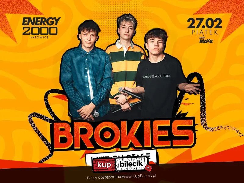 bilety: Już 27 lutego trio BROKIES wjeżdża z koncertem do Energy 2000 Katowice! To jedna z najbardziej rozpoznawalnych ekip młodego pokolenia. Usłyszycie ich najmocniejsze viralowe sztosy i najświeższe kawałki, które robią ogromne zamieszanie w sieci. Dajczman, Diskokaroll i Pirlo wystąpią na naszej scenie po raz pierwszy! Wiek: +16 lat | Start: 21:30 | Showcase na sali głównej ok 1:30. Bilety do nabycia na: KupBilecik.plBROKIES artyści: Dajczman, Diskokaroll, PirloTo jedna z najbardziej rozpoznawalnych ekip młodego pokolenia. Usłyszycie ich najmocniejsze viralowe sztosy i najświeższe kawałki, które robią ogromne zamieszanie w sieci. Bilety do nabycia na: KupBilecik.pl |